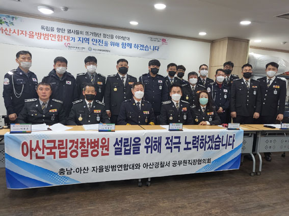 ÀÌ·¯ÇÑ ³ë·ÂÀÇ ÀÏȯÀ¸·Î ¾Æ»ê½Ã ÀÚÀ²¹æ¹ü¿¬ÇÕ´ë ÀÓ¿øÁø°ú ÇÔ²² ¾Æ»ê °æÂûº´¿ø À¯Ä¡ÀÇ Çʿ伺°ú ±×µ¿¾ÈÀÇ ÁøÇà »óȲÀ» °øÀ¯Çϰí Á»´õ ¸¹Àº ½Ã¹ÎµéÀÌ µ¿ÂüÇÒ ¹æ¾ÈÀ» ³íÀÇÇϱâ À§ÇØ ¾Æ»êÁ÷Çù°ú ÀÚÀ²¹æ¹ü´ë ÀÓ¿øÁø 20¿© ¸íÀÌ ÇÔ²² Çß´Ù.