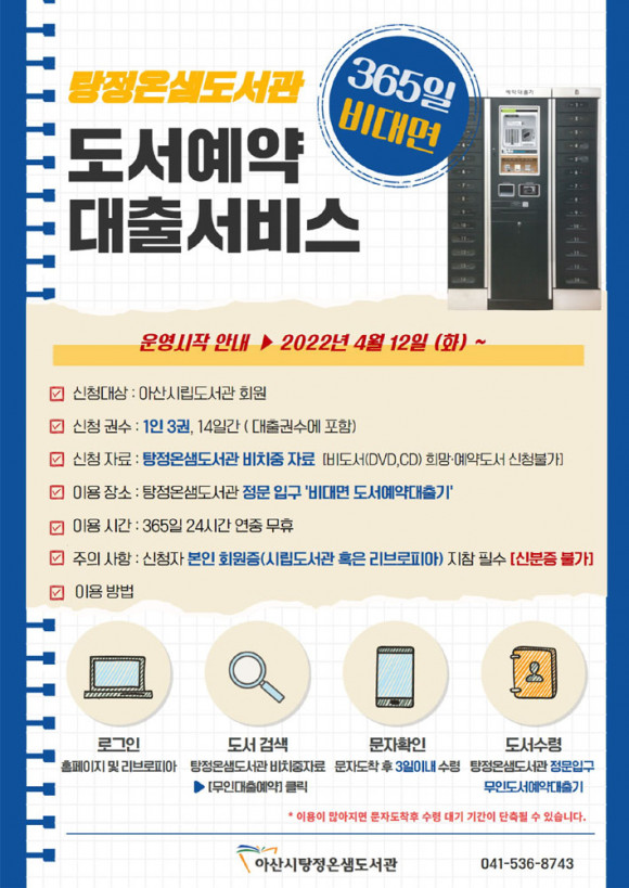 ÀÌ¿ë ¹æ¹ýÀº µµ¼°ü ȨÆäÀÌÁö ¶Ç´Â ¸®ºê·ÎÇǾƿ¡¼ ¿øÇϴ åÀ» °Ë»öÇØ ¡®¹«ÀδëÃ⿹¾à¡¯À¸·Î ½ÅûÇϰí, µµ¼ µµÂø ¾È³» ¹®ÀÚ È®ÀÎ ÈÄ µµ¼°ü Á¤¹®¿¡ À§Ä¡ÇÑ ¹«ÀδëÃâ¹Ý³³½Ç¿¡¼ ȸ¿øÁõÀ¸·Î ¹«ÀÎ µµ¼¿¹¾à´ëÃâ±â¸¦ ÅëÇØ ¿¹¾àÇÑ µµ¼¸¦ 3ÀÏ À̳»¿¡ ã¾Æ°¡¸é µÈ´Ù.