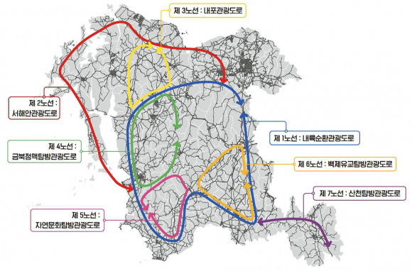 ¿¬±¸ÁøÀÌ Á¦¾ÈÇÑ ÁÖÁ¦º° °ü±¤³ë¼±Àº ¡âÁ¦1³ë¼± ³»·ú¼øÈ¯°ü±¤µµ·Î ¡âÁ¦2³ë¼± ¼ÇؾȰü±¤µµ·Î ¡âÁ¦3³ë¼± ³»Æ÷°ü±¤µµ·Î ¡âÁ¦4³ë¼± ±ÝºÏÁ¤¸ÆÅ½¹æ°ü±¤µµ·Î ¡âÁ¦5³ë¼± ÀÚ¿¬¹®È޹æ°ü±¤µµ·Î ¡âÁ¦6³ë¼± ¹éÁ¦À¯±³Å½¹æ°ü±¤µµ·Î ¡âÁ¦7³ë¼± »êõ޹æ°ü±¤µµ·Î µî ÃÑ 7°³´Ù.