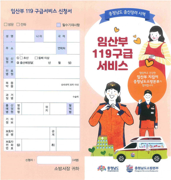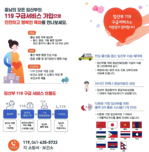 ÀÌó·³ ÀÓ»êºÎ¿Í ¿µ¾Æ¸¦ º¸È£Çϱâ À§ÇÑ ¡®ÀÓ»êºÎ 119±¸±Þ¼ºñ½º¡¯´Â »çÀü¿¡ 119 ¹× ¾Æ»ê¼Ò¹æ¼(¢Î041-538-0313)¿¡ ÀüÈ·Î ½ÅûÇϰųª, Ãæ³²119±¸±Þ»ó´ã¼ºñ½º(īī¿ÀÅå)À» Ȱ¿ëÇÏ¸é ÆòÀÏ 09½Ã¿¡¼ 18½Ã±îÁö ÀÓ»êºÎ Àü¿ë ±¸±ÞÂ÷¸¦ ÀÌ¿ëÇÒ ¼ö ÀÖ´Ù.