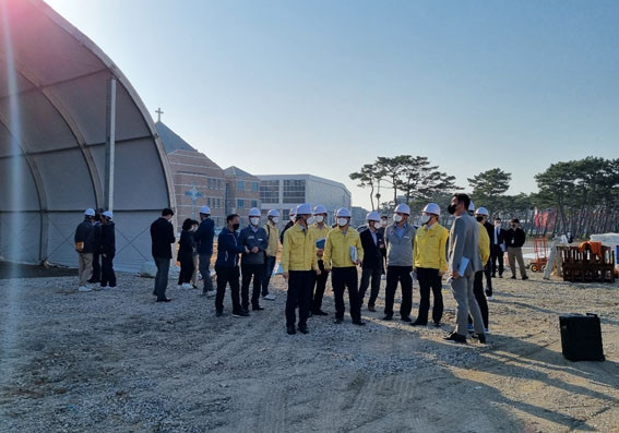 ÀÌ¾î ±â¹Ý½Ã¼³ Á¶¼º °ø»ç°¡ ÇÑâ ÁøÇà ÁßÀÎ ¹Ú¶÷ȸÀå ÇöÀåÀ» ¹æ¹®ÇÏ¿© ÁøÇà »óȲÀ» µè°í µµ¿Í ½Ã°¡ Áö¿øÇØ¾ß ÇÒ »çÇ× µî¿¡ ´ëÇØ ³íÀÇÇß´Ù.