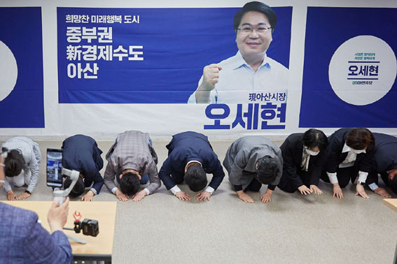¿À ½ÃÀåÀº 4¿ù 20ÀÏ ¾Æ»ê½Ãû »óȲ½Ç¿¡¼ ±âÀÚȸ°ßÀ» °®°í ¡°¾Æ»êÀÇ Áß´Ü ¾ø´Â ¹ßÀüÀ» À§ÇØ, ±×µ¿¾È ½×¾Æ¿Â 50¸¸ ÀÚÁ·µµ½ÃÀÇ ¿Ï¼ºÀ» À§ÇØ Á¦8ȸ Àü±¹µ¿½ÃÁö¹æ¼±°Å¿¡ ´õºÒ¾î¹ÎÁÖ´ç ¾Æ»ê½ÃÀå È帷ΠÇÑ ¹ø ´õ ³ª¼³ °ÍÀ» ¼±¾ðÇÑ´Ù¡±¸ç Ã⸶¸¦ °ø½ÄÈÇß´Ù.