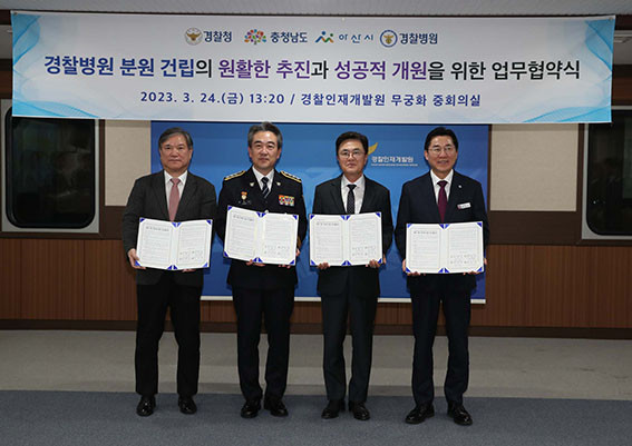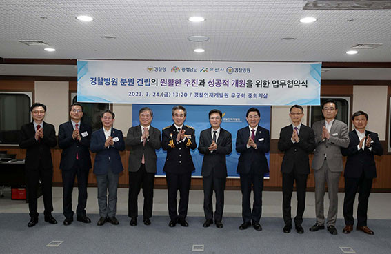 ±èÅÂÈì Áö»ç´Â 3¿ù 24ÀÏ ¾Æ»ê °æÂûÀÎÀç°³¹ß¿ø ¹«±ÃÈÁßȸÀǽǿ¡¼ À±Èñ±Ù °æÂûûÀå, ¹Ú°æ±Í ¾Æ»ê½ÃÀå, ±èÁøÇÐ ±¹¸³°æÂûº´¿øÀå°ú ¡®ºÐ¿ø °Ç¸³ ÃßÁø ¾÷¹«Çù¾à¡¯À» ü°áÇß´Ù.