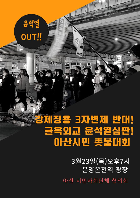 ¾Æ»ê½Ã¹Î»çȸ´ÜüÇùÀÇȸ(ÁýÇàÀ§¿øÀå ¹Ú¹Î¿ì, ÀÌÇÏ ¾Æ»ê½Ã¹Î»çȸ´Üü)´Â 3¿ù 23ÀÏ ¿ÀÈÄ 7½Ã ¿Â¾ç¿Âõ¿ª ±¤Àå¿¡¼ ¡®°Á¦Â¡¿ë 3ÀÚº¯Á¦ ¹Ý´ë, ±¼¿å¿Ü±³ À±¼®¿ ½ÉÆÇ ¾Æ»ê½Ã¹Î ÃкҴëȸ¡¯¸¦ °³ÃÖÇß´Ù.