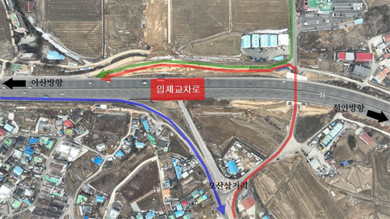 ÅëÁ¦µÈ õ¾È ¹æÇâ ´ë½Å ±âÁ¸ ¾Æ»ê ¹æÇâ µµ·Î°¡ õ¾È ¹æÇâ µµ·Î·Î, ¼³Ä¡µÈ ¿ìȸµµ·Î´Â ¾Æ»ê ¹æÇâ µµ·Î·Î Ȱ¿ëµÈ´Ù. ¶Ç, À̹ø Àӽà ¿ìȸµµ·Î¸¦ ÀÌ¿ëÇÏ¸é ¸ð»ê»ï°Å¸®¿¡¼ °¥»ê±³·Î ¹æÇâÀ¸·Î ÁÖÇàÇÏ´Ù ±¹µµ 21È£¿¡ ÁøÀÔÇÒ ¼ö ÀÖÀ¸¸ç, °¥»ê±³·Î ¹æÇâ¿¡¼ ÁÖÇàÇÏ´ø Â÷·®µµ ¿ìȸµµ·Î¸¦ ÀÌ¿ëÇÏ¸é ±¹µµ 21È£·Î ½±°Ô ÁøÀÔÇÒ ¼ö ÀÖ´Ù.