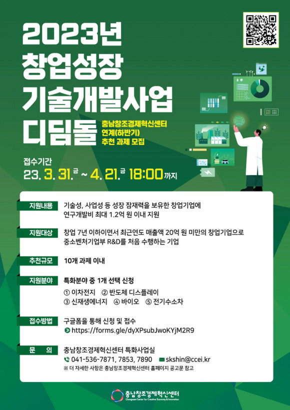 Ãæ³²Ã¢Á¶°æÁ¦Çõ½Å¼¾ÅÍ(ÀÌÇÏ Ãæ³²Ã¢°æ¼¾ÅÍ)°¡ ¡®2023³â â¾÷¼ºÀå±â¼ú°³¹ß»ç¾÷ µðµõµ¹(Áö¿ª â¾÷ Çãºê ¿¬°è)¡¯ÇϹݱ⿡ Âü¿©ÇÒ ±â¾÷À» 4¿ù 21ÀϱîÁö ¸ðÁýÇÑ´Ù°í ¹àÇû´Ù.