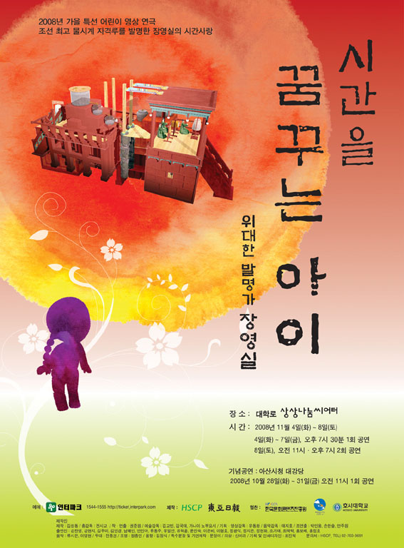 È£¼´ëÇб³(ÃÑÀå °Àϱ¸) ¹®È±âȹÇаú´Â 10¿ù 28ÀϺÎÅÍ 31ÀϱîÁö ¡®½Ã°£À» ²Þ²Ù´Â ¾ÆÀÌ - À§´ëÇÑ ¹ß¸í°¡ À念½Ç¡¯À̶ó´Â ÁÖÁ¦·Î ¾Æ»ê½Ãû ´ë°´ç¿¡¼ ¿¬±ØÀ» °ø¿¬ÇÑ´Ù. À̹ø °ø¿¬Àº ¸¸5¼¼ ÀÌ»óÀÇ ¾î¸°¾ÆÀ̺ÎÅÍ ¾î¸¥¿¡ À̸£±â±îÁö ¿Â °¡Á·ÀÌ ÇÔ²² °ü¶÷ÇÒ ¼ö ÀÖ´Â ¾Æµ¿µéÀ» ´ë»óÀ¸·Î ÇÑ °¡Á·±ØÀÌ´Ù. ¾Æµ¿µéÀ» ´ë»óÀ¸·Î ÇÑ ¿¬±ØÀº ÇÑÇØ Æò±Õ 300~400¿© ÆíÀÌ Á¦ÀÛ °ø¿¬µÇ°í ÀÖÀ¸³ª ÇöÀç ¹«´ë¿¡ ¿À¸£´Â »ó´ç¼öÀÇ °ø¿¬Àº ÃÊ Àú ¿¹»êÀ¸·Î ªÀº ½Ã°£¿¡ ±âȹµÇ°í Á¦ÀÛµÇ¾î ±× ³»¿ëÀÇ ¿Ï¼ºµµ³ª ¹«´ë¹Ì¼úÀÇ ¼öÁØÀÌ ÀÏÁ¤ ±âÁØ¿¡ ¹ÌÄ¡Áö ¸øÇÏ´Â ½ÇÁ¤ÀÌ´Ù. ±×·¯³ª À̹ø È£¼´ëÇб³ ¹®È±âȹÇаúÀÇ °ø¿¬Àº °íǰÁúÀÇ ´ëÇü 3D ¿µ»óÀ» µµÀÔÇÏ¿© º¸´Ù »ç½ÇÀûÀÎ °¨µ¿À» °ü°´µé¿¡°Ô Á¦°øÇϸç, ÁÖ¿äÀå¸éÀÇ ¹«´ë¹è°æÀ» ºñ·ÔÇÏ¿© À念½ÇÀÌ ¸¸µç ¹ß¸íǰµéÀÇ ¸ð½À°ú Á¦ÀÛ°úÁ¤ µîÀ» ½Ç°¨³ª°Ô º¸¿©ÁÖ¸ç, À½¾ÇÀº °ø¿¬ ÇöÀå¿¡¼ ¶óÀ̺ê·Î ¿¬ÁֵǴ ±¹³» ÃÖÃÊ ¾î¸°ÀÌ ¿µ»ó À½¾Ç±ØÀÌ´Ù. À̹ø °ø¿¬Àº ºÐ¸í ¿ì¸® ¾ÆÀ̵鿡°Ô »ö´Ù¸¥ °æÇèÀ» üÇèÇÏ°Ô ÇØ ÁÙ °ÍÀ¸·Î ±â´ëµÈ´Ù. À̹ø ¿¬±ØÀº È£¼´ëÇб³ ¹®È±âȹÇаú Àü½Ã±³ ±³¼ö°¡ Á¦ÀÛÃѰ¨µ¶À» ¸Â°í, ¾Æ»ê½Ã¿Í Çѱ¹¹®ÈÄÜÅÙÃ÷ÁøÈï¿øÀÇ Áö¿øÀ» ¹Þ¾Æ Á¦ÀÛÇÑ À̹ø °ø¿¬Àº Àü ȸ ¹«·á °ø¿¬À̸ç, ¿À´Ã(10¿ù 28ÀϺÎÅÍ) 31ÀϱîÁö ¸ÅÀÏ ¿ÀÀü 11½Ã ÃÑ 4ȸ¿¡ °ÉÃÄ ¾Æ»ê½Ãû ´ë°´ç¿¡¼ °ø¿¬µÈ´Ù.