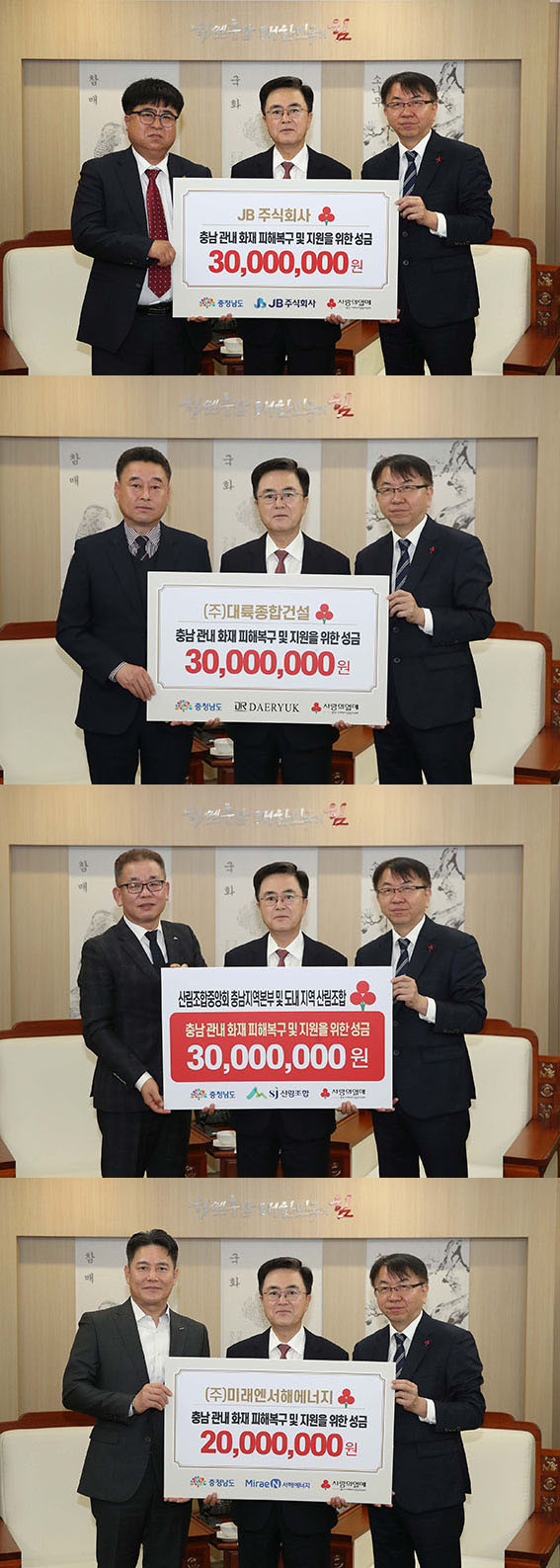 µµ´Â 14ÀÏ µµÃ» Á¢°ß½Ç¿¡¼ 9°³ ±â°ü¡¤±â¾÷À¸·ÎºÎÅÍ ÃÑ 3¾ï 3õ500¸¸ ¿øÀÇ »êºÒ ÇÇÇØ º¹±¸ Áö¿ø ¼º±ÝÀ» Àü´Þ¹Þ¾Ò´Ù.