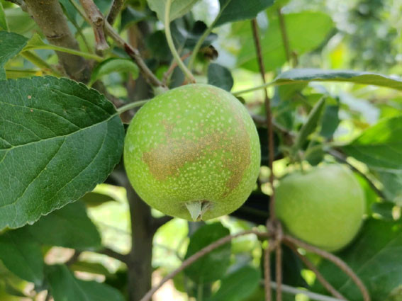 »ç°ú µ¿³ì ¿¹¹æÀ» À§Çؼ± ¾î¸° °ú½Ç Ç¥¸é¿¡ ÅÐÀÌ ¹þ°ÜÁö±â Àü »ýÀåÁ¶Á¤Á¦(GA4+7+6-BA)¸¦ ¾à 20ppm ³óµµ·Î 2¡3ȸ »ìÆ÷Çϰųª ź»êÄ®½·À» 3% ³óµµ·Î »Ñ¸®¸é µ¿³ì ¹ß»ý ¸éÀûÀ» 20¡30%°¡·® ÁÙÀÏ ¼ö ÀÖ´Ù.