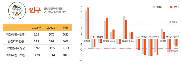 | | ¡è¡è ¡ãÃæ³²¿¬±¸¿ø-Ãæ³²Áö¿ª±ÕÇü¹ßÀüÁöÇ¥_Àα¸ ºÐ¾ß(2018, 2021) | ¨Ï ¿Â¾ç½Å¹® | | Ãæ³²Áö¿ª ½Ã¡¤±º °£ °ÝÂ÷°¡ Ä¿Áö°í ÀÖ´Â ÁÖ¿ä ÁöÇ¥´Â ¡®Àα¸¡¯, ¡®ÀçÁ¤¡¤¼Òµæ¡¯ ºÐ¾ßÀÎ °ÍÀ¸·Î ³ªÅ¸³µ´Ù.