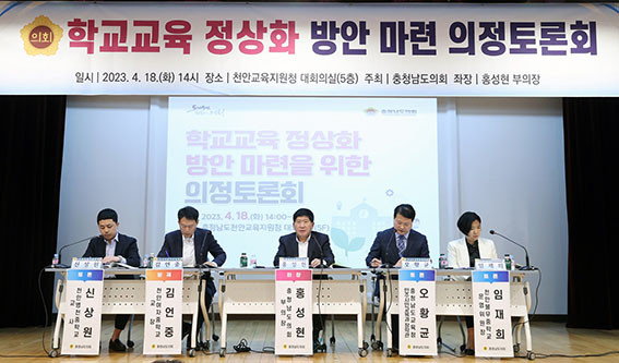 Ãæ³²µµÀÇȸ´Â È«¼ºÇö ÀÇ¿ø(õ¾È1¡¤±¹¹ÎÀÇÈû)ÀÇ ¿äûÀ¸·Î 18ÀÏ Ãµ¾È±³À°Áö¿øÃ»¿¡¼ ¡®Çб³±³À° Á¤»óÈ ¹æ¾È ¸¶·Ã ÀÇÁ¤Åä·Ðȸ¡¯¸¦ ¿°í Á¤Ã¥ ¹æÇâÀ» ³íÀÇÇß´Ù.
