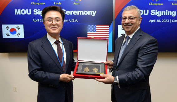 °°Àº ³¯ ¸°µ¥¿ÍÀÇ MOU ü°á¿¡ ¾Õ¼ ±è Áö»ç´Â ´º¿å ¿À·»Áö¹ö±×¿¡ À§Ä¡ÇÑ ÇÁ·º½º¿¡¾î¼ÇǽºÅ×Å©³î·ÎÁö½º(Praxair Surface Technolo-gies, Inc.) º»»ç¿¡¼ ÀüÀÚ¼ÒÀçºÎ¹® Á¸ ¼¸Õ(John Sirman) ºÎ»çÀå, ½Åµ¿Çå õ¾È½Ã ºÎ½ÃÀå°ú ÅõÀÚ¾çÇØ°¢¼(MOU)¸¦ ü°áÇß´Ù.