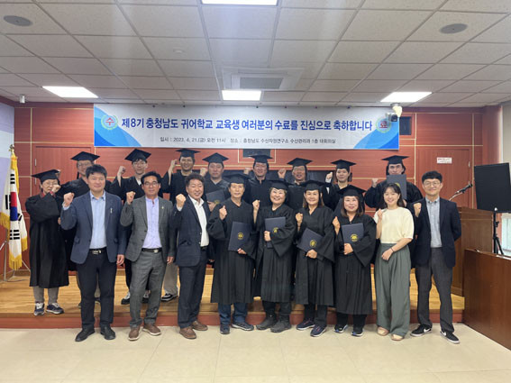 µµ ¼ö»êÀÚ¿ø¿¬±¸¼Ò´Â 4¿ù 21ÀÏ ¼ö»ê°ü¸®°ú ´ëȸÀǽǿ¡¼ Àüº´µÎ ¼ö»êÀÚ¿ø¿¬±¸¼ÒÀåÀ» ºñ·ÔÇØ 4ÁÖ°£ ±³À°À» ¼ö·áÇÑ ±³À°»ý 13¸í µîÀÌ Âü¼®ÇÑ °¡¿îµ¥, Á¦8±â ±Í¾îÇб³ Á¹¾÷½ÄÀ» °³ÃÖÇß´Ù°í ¹àÇû´Ù.