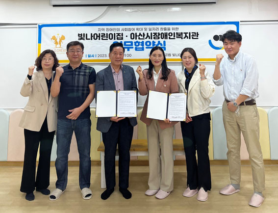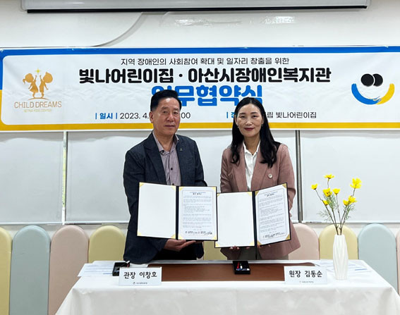 ¾Æ»ê½ÃÀå¾ÖÀκ¹Áö°ü ÀÌâȣ °üÀåÀº ¡°Àå¾ÖÀεéÀÌ Áö¿ª»çȸ¿¡¼ ÀÏÀ» ÅëÇØ »çȸÀÇ ÀÏ¿øÀ¸·Î ÇÔ²² ¾î¿ï·Á »ýȰÇÒ ¼ö ÀÖµµ·Ï ±âȸ¸¦ Áֽðí ÇÔ²² Çù·ÂÇØ Áּż °¨»çµå¸³´Ï´Ù.¡±¶ó°í ¸»Çϸç, ¡°¿À´Ã Çù¾àÀ» °è±â·Î ¾ÕÀ¸·Îµµ Áö¿ª Àå¾ÖÀεéÀÇ ÀÏÀÚ¸®¸¦ ÅëÇÑ »çȸÂü¿© È®´ë¸¦ À§ÇØ ´õ¿í ³ë·ÂÀ» ±â¿ïÀ̰ڴÙ.¡±¶ó°í Àλ縻À» ÀüÇß´Ù.
