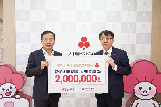 ÇÑÆí µµ´Â »êºÒ ÇÇÇØ º¹±¸ Áö¿øÀ» À§ÇØ Ãæ³²»çȸº¹Áö°øµ¿¸ð±Ýȸ ÁÖ°üÀ¸·Î ´ÙÀ½´Þ ¸»±îÁö ¼º±Ý ¸ð±ÝÀ» ÁøÇàÇϸç, Ãæ³²»çȸº¹Áö°øµ¿¸ð±Ýȸ Àü¿ë °èÁÂ(³óÇù 301-0700-1212-01)¸¦ ÅëÇØ ´©±¸³ª Âü¿©ÇÒ ¼ö ÀÖ´Ù.