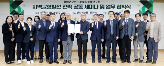 ±èÈ«¹è LH ÅäÁöÁÖÅÿ¬±¸¿øÀåÀº ¡°Áö¿ªÁÖµµÀÇ ±ÕÇü¹ßÀüÀ¸·Î Áö¹æ½Ã´ë¸¦ ¿¾î°¡±â À§Çؼ´Â Áß¾ÓÁ¤ºÎ¿Í Áö¹æÁ¤ºÎÀÇ ±ä¹ÐÇÑ ¼ÒÅë»Ó¸¸ ¾Æ´Ï¶ó Áö¹æÁ¤ºÎ °£ Çù·Â °Èµµ ¸Å¿ì Áß¿äÇÏ´Ù¡±¸ç ¡°ÅäÁöÁÖÅÿ¬±¸¿øÀº ±¹Åä±ÕÇü¹ßÀüÀ» ÁÖ¿ä ¹Ì¼ÇÀ¸·Î ÇÏ¿© 12°³ ±¤¿ª½Ã¡¤µµ ¿¬±¸¿ø°úÀÇ Çù·Â ³×Æ®¿öÅ©¸¦ ±¸Ãà ÁßÀ̸ç, À̹ø Ãæ³²¿¬±¸¿ø°úÀÇ Çù¾àÀ» ÅëÇØ Ãæ³²Áö¿ªÀÇ ¹ßÀü°úÁ¦¿¡ ´ëÇØ ÇÔ²² °í¹ÎÇϰڴ١±°í ¸»Çß´Ù.
