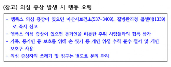 ¹Ú°æ±Í ¾Æ»ê½ÃÀåÀº ¡°¿¥Æø½º, È«¿ª µîÀÇ Áö¿ª ³» ÀüÆÄ¸¦ Â÷´ÜÇϱâ À§ÇØ °¨¿°º´ ÀüÆÄ°æ·Î, ÀÓ»óÁõ»ó µî Á¤º¸¸¦ »ó¼¼È÷ Á¦°øÇϰí, ÀÇ½É Áõ»ó ¹ß»ý ½Ã ´©±¸³ª ½±°Ô ½Å°í ¹× ¹®ÀÇ ÇÒ ¼ö ÀÖÀ¸¸ç, °íÀ§Ç豺ÀÌ °³ÀÎÁ¤º¸ ³ëÃâÀ» ¿ì·ÁÇÏ¿© ½Å°í¸¦ ²¨¸®´Â ÀÏÀÌ ¾øµµ·Ï ½Ã¹Î Æí¸®¸¦ °ÈÇØ¾ß ÇÑ´Ù¡±°í ÇØ´ç ºÎ¼¿¡ Áö½ÃÇß´Ù.