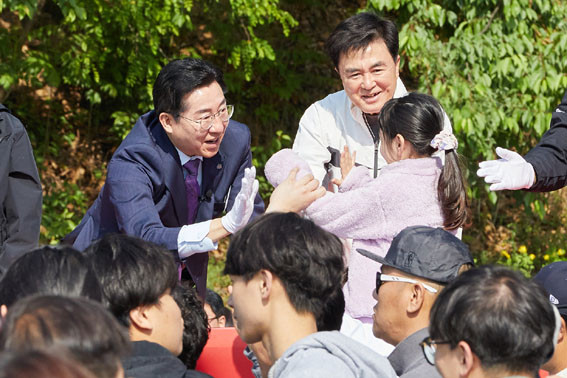 ¹Ú°æ±Í ½ÃÀåÀº ±èÅÂÈì Áö»ç¿Í ÇÔ²² °³È¸½ÄÀÌ ¿¸®±â ÀüºÎÅÍ Çà»çÀå ÁÖº¯À» µ¹¸ç ÀÚ¿øºÀ»çÀÚµé°ú Àü±¹ ¸¶¶óÅä³ÊµéÀ» ȯ¿µÇÏ°í °Ý·ÁÀÇ ¸Þ½ÃÁö¸¦ ³²°å´Ù.