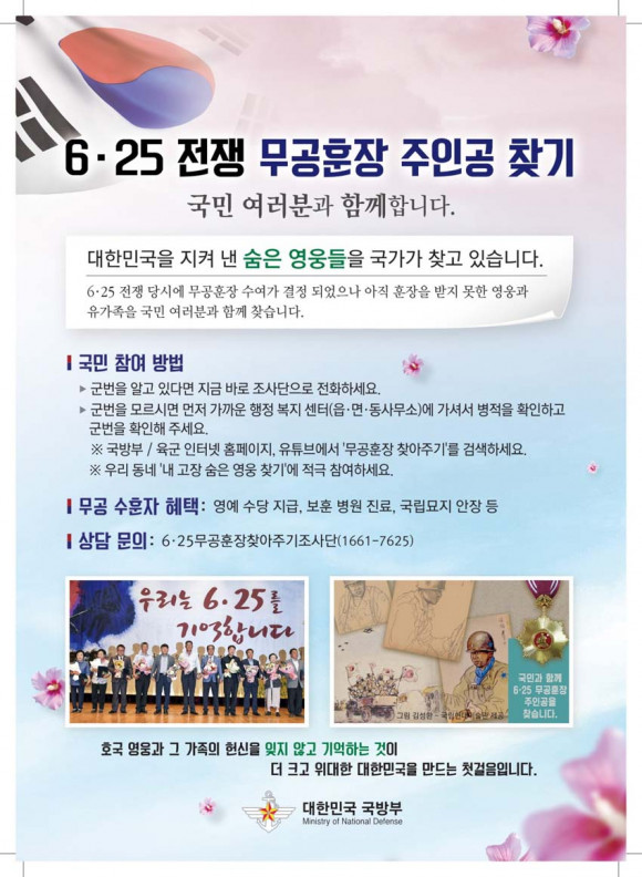 ÇÑÆí, ¼öÈÆ ´ç»çÀÚ³ª °¡Á·À» ¾Ë°í ÀÖ´Â ½Ã¹ÎµéÀº ±¹¹æºÎ³ª À°±ºº»ºÎ ´©¸®Áý¿¡ °Ô½ÃµÈ ¡®¹«°øÈÆÀå ÁÖÀΰø ¸í´Ü¡¯À» È®ÀÎÇÑ ÈÄ 6¡¤25 ¹«°øÈÆÀå ã¾ÆÁÖ±â Á¶»ç´Ü(1661-7625, 042-550-7382)À¸·Î ¿¬¶ôÇÏ¸é µÈ´Ù.