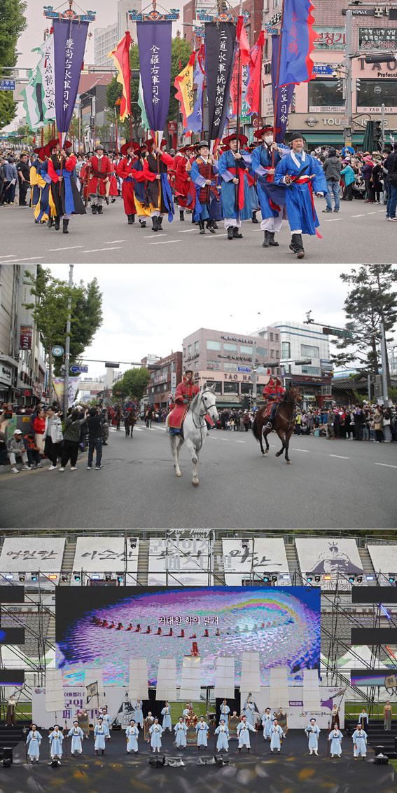 ÁÖ °ø¿¬ÀåÀÎ À̼ø½ÅÁ¾ÇտÀå¿¡¼´Â ¾Æ»ê½Ã¸³ÇÕâ´ÜÀÇ ÄŸŸ °ø¿¬ ¡®³ÁßÀϱ⡯¸¦ ½ÃÀÛÀ¸·Î ¡®¾Æ¸Þ¸®Ä« °« ÅÅ·±Æ®¡¯ °á¼±¿¡ ÁøÃâÇØ ¼¼°èÀÎÀÇ ´«À» »ç·ÎÀâÀº ¼¼°èűǵµ¿¬¸Í ½Ã¹ü´ÜÀÇ ¡®ÇÊ»çÁï»ý ÇÊ»ýÁï»ç¡¯ ÆÛÆ÷¸Õ½º, ¡®½ºÆ®¸´ ¸Ç ÆÄÀÌÅÍ¡¯ Ã⿬ÆÀÀÎ ¿ø¹Ð¸®¾ð°ú Àú½ºÆ®ÀýÅ©ÀÇ ¡®ÇÐÀÍÁø ½ºÆ®¸´ ´í½º¡¯, ¼¼°èÇÕâ¿Ã¸²ÇÈ 4°ü¿Õ¿¡ ºû³ª´Â ±¹°¡´ëÇ¥ ¼îÄâÀÌ¾î ±×·ì Çϸð³ªÀÌÁîÀÇ ¹ÂÁöÄà <À̼ø½Å> Å׸¶°î °ø¿¬ µî ¿À·ÎÁö À̼ø½Å À屺À» Å׸¶·Î ÇÑ °íǰ°Ý ¹®È¿¹¼ú °ø¿¬ÀÌ ½¯ »õ ¾øÀÌ ÆîÃÄÁ³´Ù.