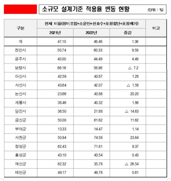 µµ °¨»çÀ§¿øÈ¸ ½ÇÅ Á¡°Ë °á°ú, 15°³ ½Ã¡¤±ºÀÇ ¼Ò±Ô¸ð °Ç¼³°ø»ç ¼³°è±âÁØ Àû¿ë·üÀº 48.5%¿¡ ºÒ°úÇß´Ù.