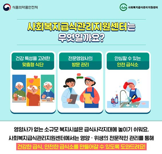 ÀÌ¿¡ ½Ã´Â »õ·Ó°Ô Á¦Á¤µÈ ¡®³ëÀΡ¤Àå¾ÖÀÎ µî »çȸº¹Áö½Ã¼³ÀÇ ±Þ½Ä ¾ÈÀü Áö¿ø¿¡ °üÇÑ ¹ý·ü¡¯¿¡ ±Ù°ÅÇØ »çȸº¹Áö±Þ½Ä°ü¸®Áö¿ø¼¾Å͸¦ ¼³Ä¡ÇÏ°í ³ëÀοä¾ç½Ã¼³, Àå¾ÖÀÎ °ÅÁֽü³ µî¿¡ ¾ÈÀüÇϰí ü°èÀûÀÎ ½Ä´Ü°ú ¿µ¾ç °ü¸® Áöµµ Áö¿ø¿¡ ³ª¼°Ô µÆ´Ù.