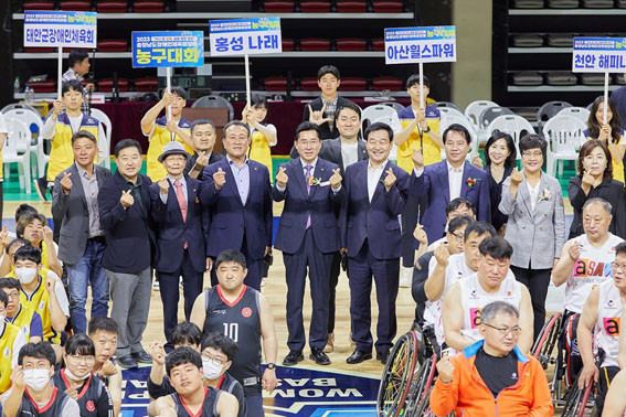 À̳¯ 2023 ÃæÃ»³²µµÀå¾ÖÀÎüÀ°È¸Àå¹è ³ó±¸´ëȸ¿¡´Â ¹Ú°æ±Í ¾Æ»ê½ÃÀå, ±èÈñ¿µ ¾Æ»ê½ÃÀÇȸ ÀÇÀåÀ» ºñ·ÔÇÑ À̸í¼ö ±¹È¸ÀÇ¿ø, ½Ã¡¤µµÀÇ¿ø µîÀÌ Âü¼®ÇØ Àå¾ÖÀεé°ú ÇÔ²²Çß´Ù.