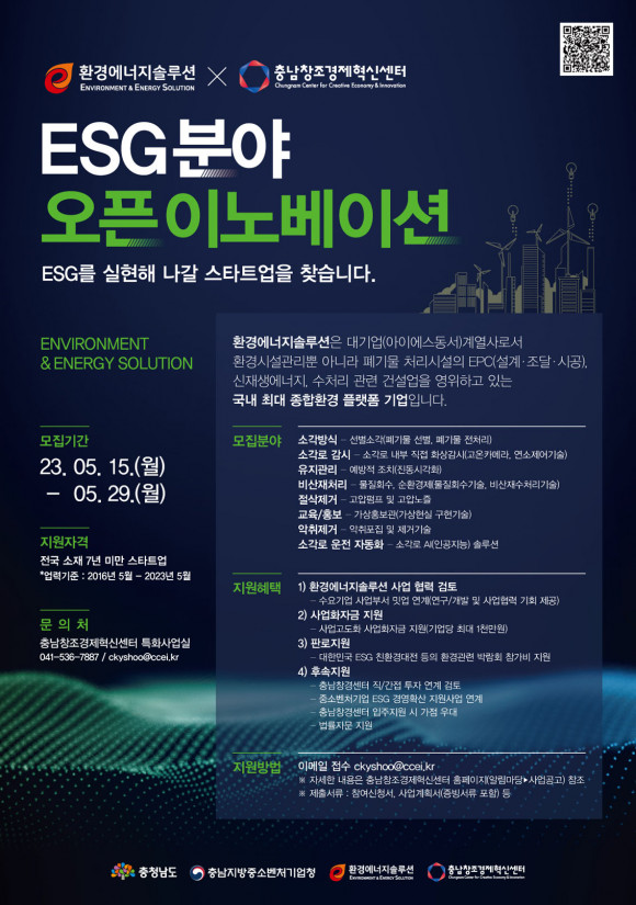 Ãæ³²Ã¢°æ¼¾Åʹ ȯ°æ¿¡³ÊÁö¼Ö·ç¼ÇÀÇ ÀÚ¿ø°ú ½ºÅ¸Æ®¾÷ÀÇ Çõ½Å ±â¼ú °£ ¿ÀÇ À̳뺣À̼ÇÀ» ÅëÇØ ESG ºÐ¾ßÀÇ »õ·Î¿î ±â¼ú °³¹ß°ú »ç¾÷ °íµµÈ¸¦ À̲ø °èȹÀÌ´Ù.