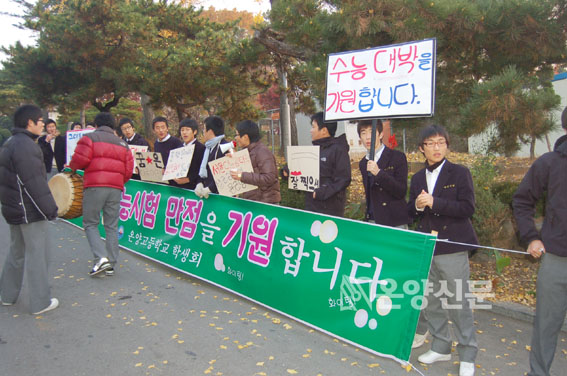 ³»³âµµ ´ëÇÐÀÔÇÐÀÇ ÃÖ´ë °ü¹®ÀÎ 2009Çг⵵ ´ëÇÐÀÔÇмöÇдɷ½ÃÇè(ÀÌÇÏ ¼ö´É)ÀÌ 13ÀÏ ¿ÀÀü Àü±¹¿¡¼ ÀÏÁ¦È÷ ½ÃÀ۵ƴÙ. ¾Æ»ê¿¡¼´Â ¿Â¾ç°í¿Í ¾Æ»ê°í, ¿Â¾ç¿©°í µî 3°³ °íµîÇб³ ½ÃÇèÀåÀÇ 54°³ ½ÃÇè½Ç¿¡¼ ÃÑ 1õ230¸í(³² 653¸í, ¿© 577¸í)ÀÌ ÀÀ½ÃÇÏ°Ô µÈ´Ù. À̳¯ ÀÀ½ÃÇлýµéÀº ¿ÀÀü 8½Ã 10ºÐ ÀԽǿϷῡ À̾î 1±³½Ã ¾ð¾î, 2±³½Ã ¼ö¸®, 3±³½Ã ¿Ü±¹¾î(¿µ¾î), 4±³½Ã »çȸ¡¤°úÇС¤Á÷¾÷ޱ¸, 5±³½Ã Á¦2¿Ü±¹¾î¡¤Çѹ® ½ÃÇèÀ» Ä¡¸£°Ô µÇ¸ç À̳¯ ½ÃÇè °á°ú´Â ¿À´Â 12¿ù 10ÀÏ Çб³º°·Î ÅëÁöµÈ´Ù. À̳¯ Áö¿ªÀÇ °¢±Þ ºÀ»ç´Üü µîÀº ½ÃÇèÀå ÁÖº¯¿¡¼ ±³ÅëÁ¤¸®¸¦ ºñ·ÔÇØ ¼öÇè»ý ¾È³», µû¶æÇÑ Â÷ ´ëÁ¢ µîÀ¸·Î ½ÃÇèÀ» ¾ÕµÐ ¼öÇè»ý ¹× °¡Á·µéÀ» ¹è·ÁÇß´Ù. ¶Ç °¢ °í±³ º°·Î Ãѵ¿Ã¢È¸¿øµé°ú 1~2Çгâ ÈĹèµéÀÌ ½ÃÇèÀå ÀÔ±¸¿¡¼ °¢Á¾ °Ý¹®ÀÌ ÀûÈù ÇÇÄÏ µîÀ» µé°í ¼Ó¼Ó ÀÔÀåÇÏ´Â ¼öÇè»ýµéÀ» °Ý·Á¡¤ÀÀ¿øÇß´Ù. ÇÑÆí Ãæ³²µµ±³À°Ã»(±³À°°¨ ±ÇÇÑ´ëÇà ºÎ±³À°°¨ ÇѼ®¼ö)Àº À̹ø ¼ö´É¿¡¼ 9¸íÀÇ Æ¯º°°ü¸®´ë»óÀÚ(¾à½Ã(Àú½Ã·Â) 3¸í, ³ú¼º¸¶ºñ(³úº´º¯) 4¸í, û°¢Àå¾Ö 1¸í, ÁöüºÎÀÚÀ¯ÀÚ 1¸í)¸¦ º°µµ ¹è·ÁÇß´Ù. ¾Æ»ê ½ÃÇèÁö±¸¿¡¼´Â ¾Æ»ê°íÀÇ ¾à½Ã ¼öÇè»ý 1¸íÀÌ ÇØ´çµÅ ÀÌ Çлý¿¡°Ô´Â 5±³½Ã Á¾·á½Ã°£ÀÌ ÀÏ¹Ý ¼öÇè»ý º¸´Ù 1.5¹è ¿¬ÀåµÅ ¿ÀÈÄ 9½Ã 5ºÐ¿¡ Á¾·áµÇ¸ç ƯÈ÷ ÀÌ Çлý¿¡°Ô´Â È®´ë µ¶¼±â¸¦ »ç¿ëÇÒ ¼ö ÀÖ°í, º»ÀÎÀÌ ¿ø¼ Á¢¼ö ½Ã ½ÅûÇÑ Å©±â·Î È®´ë(118%, 200%, 350% Áß ÅÃ1)ÇÑ ¹®Á¦Áö·Î ½ÃÇèÀ» º¸°Ô µÈ´Ù. | | | ¡ã ¾Æ»êÁö±¸ Á¦1½ÃÇèÀåÀÎ ¿Â¾ç°íµîÇб³ ¾Õ | | | | ¡ã Á¶±Ý Ãß¿öµµ ¼±¹è´ÔµéÀ» À§Çؼ¶ó¸é... | | | | ¡ã µ¢µ¢µ¢Äôµ¢... 2002³âÀ» ÈÛ¾µ¾ú´ø 5¹ÚÀÚ ¸®µë¿¡ ¸ÂÃç ¼±¹èµéÀ» ÀÀ¿øÇÏ´Â ¿Â¾ç°í ÈĹèµé | | | | ¡ã ÀÚ¸ðȸ¿¡¼µµ ³ª¿Í µû¶æÇÑ Â÷ ÇÑÀܾ¿À» ´ëÁ¢. | | | | ¡ã ¾Æ»êÁö±¸ Á¦2½ÃÇèÀåÀÎ ¾Æ»ê°íµîÇб³ ¾Õ | | | | ¡ã À̰÷¿¡¼µµ ÈĹèµéÀº ¿½ÉÈ÷ ÀÀ¿øÀ»... | | | | ¡ã "Æò°ÀÌ´Â ÁÁ°Ú³×" ¼¿ï´ë ¼ö½Ã1Â÷¿¡ ÇÕ°ÝÇÑ ¿Â¾ç°í ÀÌÆò°±ºÀÌ ¾Æ»ê°í ½ÃÇèÀåÀ¸·Î µé¾î°¡°í ÀÖ´Ù. | | | | ¡ã ±â¹ßÇÑ ¼ö´É °Ý¾ðÀº ¿©Àü. | | | | ¡ã ÈĹèµéÀÇ ÀÀ¿ø¿¡ ¿äÂÊ, Á¶ÂÊ º¼ÀÌ ¶ß¶æÇØ¿ä. | | | | ¡ã "¼±¹è´Ô ½ÃÇè Àß Ä¡¸£¼¼¿ä" ¾Æ»ê°í 1Çг⿡ ÀçÇÐÁßÀÎ ±è±¤¸¸ Àü µµÀÇ¿øÀÌ ¼öÇè»ýÀ» ÀÀ¿øÇϰí ÀÖ´Ù. | | | | ¡ã "³ª¿Ô´Ù" ¾Æ»ê°í ±³¹®¾Õ ¼ö´É½ÃÇèÀÏ ·¹ÆÄÅ丮 18¹ø. "¼±¹è´Ôµé, ¸¸Á¡ ¹ÞÀ¸¼¼¿ä" | | | | ¡ã ¿ì¸®¶ó°í Áú¼Ò³Ä, "¼±¹è´ÔµéÀÇ ¸¸Á¡ È®½ÇÇÕ´Ï´Ù" | <ÀÓÀç·æ ±âÀÚ>