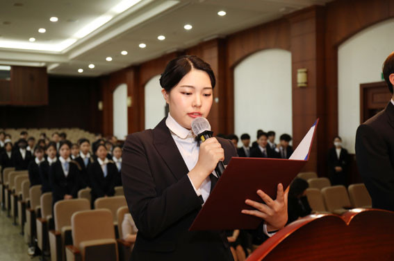 23Çйø ½ÅÀÔ»ýµéÀº Çѱ¹¾î, ¿µ¾î, Áß±¹¾î, ÀϺ»¾î, º£Æ®³²¾î·Î ¼±¾ð¹®À» ³¶µ¶Çϰí ÀüÅë Çà»çÀÎ ¸íÂû ´Þ¾ÆÁֱ⸦ ÁøÇàÇß´Ù.