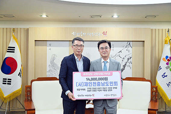 ±èÅÂÈì Áö»ç´Â 6¿ù 1ÀÏ µµÃ» Á¢°ß½Ç¿¡¼ ÀÌÀç¿í ÀçÀÎõ Ãæ³²µµ¹Îȸ ȸÀå µîÀ» Á¢°ßÇϰí, °íÇâ»ç¶û±âºÎ±Ý 1õ400¸¸ ¿øÀ» Àü´Þ¹Þ¾Ò´Ù.