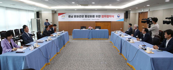 µµ´Â 6¿ù 5ÀÏ µµÃ» »óȲ½Ç¿¡¼ ±èÅÂÈì µµÁö»ç¿Í ÇÏÁ¾´ë Çѱ¹Á¤Ã¥¹æ¼Û¿øÀå µî ¾ç ±â°ü °ü°èÀÚ 10¿© ¸íÀÌ Âü¼®ÇÑ °¡¿îµ¥, ¡®Ãæ³² ¹®È°ü±¤ Ȱ¼ºÈ¸¦ À§ÇÑ ¾÷¹«Çù¾à¡¯À» ü°áÇß´Ù°í ¹àÇû´Ù.