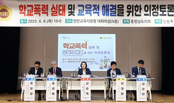 Ãæ³²µµÀÇȸ´Â ½Å¼ø¿Á ÀÇ¿ø(ºñ·Ê¡¤±¹¹ÎÀÇÈû)ÀÇ ¿äûÀ¸·Î 6¿ù 8ÀÏ Ãµ¾È±³À°Áö¿øÃ»¿¡¼ ¡®Çб³Æø·Â ½ÇÅ ¹× ±³À°Àû ÇØ°áÀ» À§ÇÑ ÀÇÁ¤Åä·Ðȸ¡¯¸¦ ¿°í Á¤Ã¥ ¹æÇâÀ» ³íÀÇÇß´Ù.