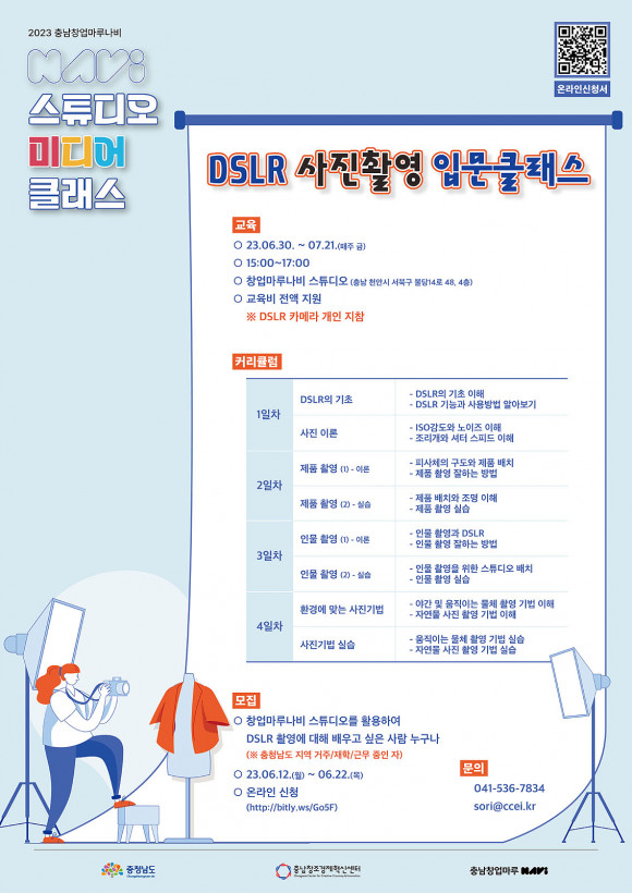 ÇØ´ç °úÁ¤Àº DSLRÀ» Ȱ¿ëÇØ Á¦Ç°ÃÔ¿µ, Àι°ÃÔ¿µ µî ´Ù¾çÇÑ »çÁø±â¹ý¿¡ ´ëÇØ ¹è¿ì°í ½Ç½ÀÇØ º¸´Â °úÁ¤À̸ç Ãæ³²Ã¢¾÷¸¶·ç³ªºñ(Ãæ³² õ¾È½Ã ¼ºÏ±¸ ºÒ´ç14·Î 48) 4Ãþ¿¡¼ ÁøÇàµÈ´Ù.