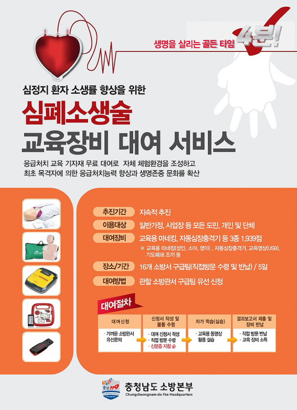 ÀÌ¿¡ ¾Æ»ê¼Ò¹æ¼°¡ ¿î¿µÁßÀÎ ½ÉÆó¼Ò»ý¼ú ±³À°Àåºñ ´ë¿© ¼ºñ½º´Â ¾Æ»ê ½Ã¹ÎÀÌ¸é ´©±¸³ª ½Åû °¡´ÉÇϸç, ±³À°¿ë ¸¶³×Å·, ±³À°¿ë ÀÚµ¿½ÉÀåÃæ°Ý±â µîÀ» ´ë¿©ÇÒ ¼ö ÀÖ´Ù.