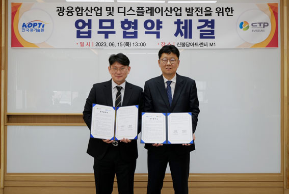| | ¡è¡è <»çÁøÁ¦°ø=Ãæ³²Å×Å©³ëÆÄÅ©> | ¨Ï ¿Â¾ç½Å¹® | | Ãæ³²Å×Å©³ëÆÄÅ© µð½ºÇ÷¹À̼¾ÅÍ´Â 6¿ù 15ÀÏ ½ÅºÒ´ç¾ÆÆ®¼¾ÅÍ¿¡¼ Çѱ¹±¤±â¼ú¿ø(KOPTI)¿Í ¡®±¤À¶ÇÕ»ê¾÷ ¹× µð½ºÇ÷¹ÀÌ»ê¾÷ ¹ßÀüÀ» À§ÇÑ ¾÷¹«Çù¾à¡¯À» ü°áÇß´Ù.