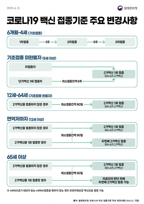 ¾Æ»ê½Ã(½ÃÀå ¹Ú°æ±Í)°¡ ¿À´Â 7¿ù 3ÀϺÎÅÍ 5~11¼¼ ´ë»ó Äڷγª19 ¿¹¹æÁ¢Á¾À» ¼Ò¾Æ¿ë ÈÀÌÀÚ BA.4/5 2°¡ ¹é½ÅÀ¸·Î º¯°æÇϰí, ±âÃÊÁ¢Á¾À» ±âÁ¸ 2ȸ¿¡¼ 1ȸ·Î Ãà¼ÒÇÑ´Ù°í ¾Ë·È´Ù.