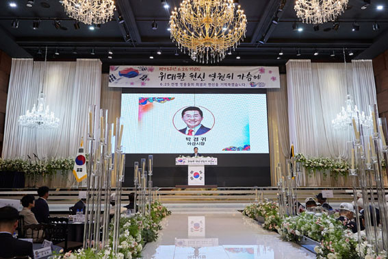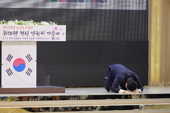 ¾Æ»ê½Ã´Â Áö³ 6¿ù 23ÀÏ ¾Æ»êÅ͹̳οþµùȦ¿¡¼ ¡®À§´ëÇÑ Çå½Å ¿µ¿øÈ÷ °¡½¿¿¡¡¯¸¦ ÁÖÁ¦·Î 6¡¤25ÀüÀï Á¦73ÁÖ³â Çà»ç¸¦ ¿°í, ³ª¶ó¸¦ Áö۱â À§ÇØ Çå½ÅÇÑ È£±¹¿µ·ÉÀ» ±â¸®°í, ÂüÀüÀ¯°øÀÚ¿Í ±× °¡Á·µéÀÇ Èñ»ý°ú Çå½Å¿¡ °¨»ç¸¦ Ç¥Çß´Ù.