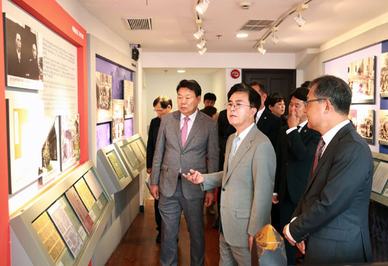 À̳¯ ±ÃÁ¤ »óÇÏÀ̽ÃÀå°ú °£´ãȸ¸¦ ¸¶Ä¡°í, ´ëÇѹα¹ ÀÓ½ÃÁ¤ºÎ¿Í À± ÀÇ»ç ±â³ä°üÀ» ãÀº ±è Áö»ç´Â Á¶±¹ µ¶¸³À» À§ÇØ Èñ»ýÇÑ ¼ø±¹¼±¿¿¡ ÇåÈ ¹× ¹¬³äÇϰí, ¸¸º¸»ê »ç°Ç µîÀ¸·Î ¾ÇÈµÈ ÇÑ-Áß °ü°è¸¦ ȸº¹½ÃŲ »óÇÏÀÌÀǰÅÀÇ Àǹ̸¦ µÇ»õ°å´Ù.