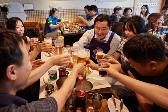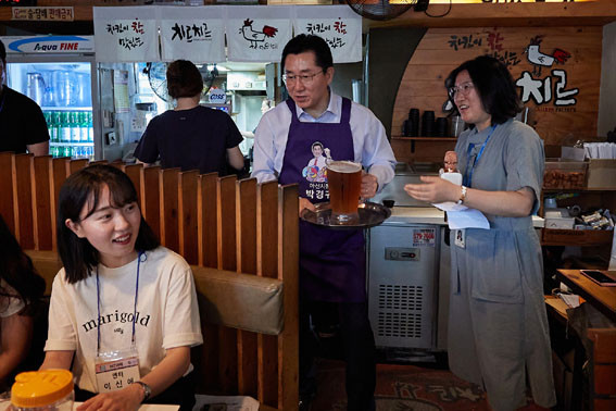 À̳¯ ¹Ú ½ÃÀåÀº ¾ÕÄ¡¸¶¸¦ Âø¿ëÇÑ ÈÄ Å×ÀÌºí¸¶´Ù ¼Õ¼ö ġŲ°ú ¸ÆÁÖ¸¦ Àü´ÞÇϸç MZ¼¼´ë °ø¹«¿ø°ú ÀÚÀ¯·Î¿î ¼ÒÅëÀÇ ½Ã°£À» °¡Á³´Ù.