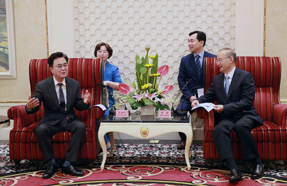 ÀÌ ÀÚ¸®¿¡¼ ±×µ¿¾ÈÀÇ ¿ìÁ¤À» ÀçÈ®ÀÎÇÑ ±è Áö»ç´Â Ȳġ¾Ó ¾²ÃÓ¼ºÀå°ú ±ÃÁ¤ »óÇÏÀ̽ÃÀå¿¡°Ô ¡°¾Æ¹«¸® °¡±î¿î »çÀÌ¶óµµ ±³·ùÇÏÁö ¾ÊÀ¸¸é ¸Ö¾îÁø´Ù¡±¸ç ¡°±³·ù È®´ë¸¦ ÅëÇØ ¾ç Áö¿ªÀÇ ¹ßÀüÀ» ³Ñ¾î Çѱ¹°ú Áß±¹ÀÇ °ü°è¸¦ ´õ¿í ¹ßÀü½Ã۰í, ÁõÁø½Ãų ¼ö ÀÖµµ·Ï ¿Ü±³ÀûÀÎ ºÎºÐ¿¡¼ ¸ð¹üÀÌ µÇÀÚ¡±°í °è¼ÓÇØ¼ °Á¶Çß´Ù.