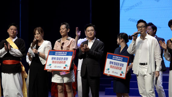 ÀÌ¿Í ÇÔ²² ¾²ÃÓ¼º°úÀÇ ÀڸŰῬ 5Áֳ⠱â³ä½Ä¿¡ ¾Õ¼ ûµÎ½Ã õ±Ø¿ø¿¡¼ ¿¸° ÇÑ-Áß ÇÕµ¿°ø¿¬¿¡¼´Â ¾²ÃÓ¼º ¹®È¿©À¯Ã» °ü°èÀÚ¿Í Ã»µÎ ½Ã¹Î°ú ±³¹Î µî 450¿© ¸í ¾Õ¿¡ ¹éÁ¦ ÀüÅë ÀÇ»óÀ» ÀÔ°í Á÷Á¢ ¹«´ë¿¡ ¿Ã¶ó ´ë¹éÁ¦ÀüÀ» È«º¸ÇÏ´Â ¿ÀǸ¦ º¸¿´´Ù.