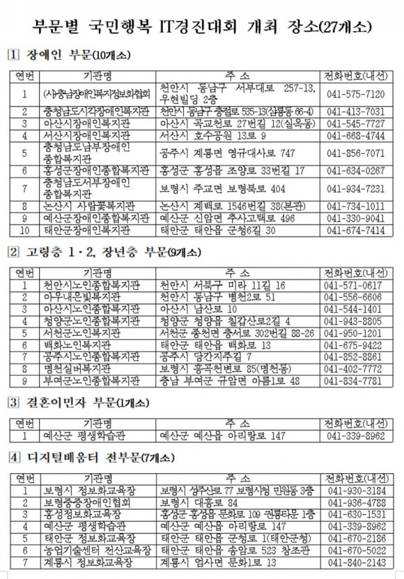ÀÚ¼¼ÇÑ »çÇ×Àº ±¹¹ÎÇູ IT°æÁø´ëȸ ´©¸®ÁýÀ» Âü°íÇϰųª µµ Á¤º¸È´ã´ç°ü(¢Ï041-635-3711)À¸·Î ¹®ÀÇÇÏ¸é µÈ´Ù.
