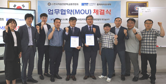 À̹ø Çù¾à¿¡¼ ¹ÚÈ«ÀÏ (»ç)Àü±¹Á÷¾÷Àü¹®Çб³ÃÑ¿¬ÇÕȸ ÀÌ»çÀåÀº ¡°¹Ì·¡¸¦ ¼±µµÇÏ´Â ¿ì¼öÇÑ ´ëÇаúÀÇ ¾÷¹«Çù¾à½ÄÀ» °®°Ô µÅ ±â»Ú°Ô »ý°¢ÇÑ´Ù¡±¶ó¸ç ¡°À̹ø Çù¾àÀ» ÅëÇØ ÈÆ·Ã»ýÀÇ °è¼ÓµÈ Çо÷ÀÌ °¡´ÉÇÏ°í ´ëÇÐÀÇ ¾ÈÁ¤ÀûÀÎ Çлý¸ðÁý°ú °ü·Ã ±â¾÷ ä¿ëÀ¸·Î±îÁö À̾îÁö´Â ¼±¼øÈ¯ ±¸Á¶°¡ ±¸ÃàµÇ±æ ¹Ù¶õ´Ù¡±°í ¸»Çß´Ù.