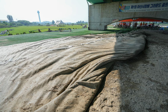±×¶ó¿îµå°ñÇÁÀå°ú ¾Æ»ê½Ã¹ÎüÀ°°ø¿ø ³» ¾ß±¸Àå, À̼ø½ÅÆÄÅ©°ñÇÁÀåÀÇ Ææ½º°¡ ÆÄ¼ÕµÇ°Å³ª À¯½ÇµÆÀ¸¸ç, ±×¶ó¿îµå°ñÇÁÀå°ú °º¯Å״ϽºÀåÀÇ ÀÎÁ¶Àܵ𰡠ÈÑ¼ÕµÈ »óÅ¿´´Ù. À̿ܿ¡µµ °¥¸ÅüÀ°°ø¿ø ³» ±¹±ÃÀåÀÇ °ú³áÀÌ ÆÄ¼ÕµÅ ÀÖ¾ú´Ù.