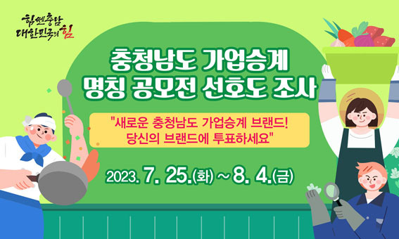 °¡¾÷½Â°è ¼Ò»ó°øÀÎ Áö¿ø»ç¾÷ÀÇ ¸íĪ ¼±È£µµ Á¶»ç´Â Ãæ³²µµ¹ÎÀÌ¸é ´©±¸³ª Âü¿©ÇÒ ¼ö ÀÖÀ¸¸ç, ´ëÀüŸÀÓÁî, ÁøÈï¿ø, Ãæ³²¼Ò»ó°øÀÎÁö¿ø¼¾ÅÍ È¨ÆäÀÌÁö È«º¸ ¹è³Ê Ŭ¸¯À» ÅëÇØ Âü¿©ÇÒ ¼ö ÀÖ´Ù.