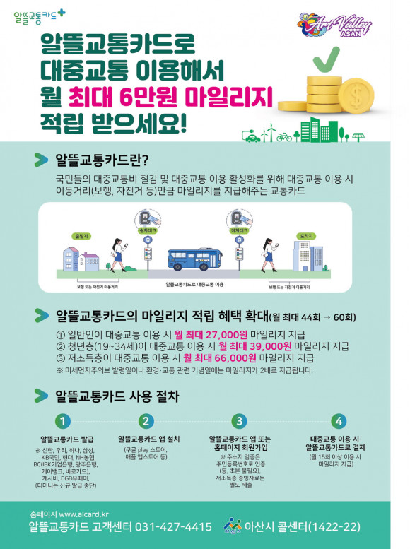 ¾Æ»ê½Ã(½ÃÀå ¹Ú°æ±Í)´Â 7¿ùºÎÅÍ ¡®¾Ë¶ã±³ÅëÄ«µå¡¯ ¹ß±Þ °¡´É Ä«µå»ç ¹× ¸¶Àϸ®Áö ÇýÅà Ȯ´ë·Î »ç¿ë ÆíÀǼºÀÌ Çâ»óµÆ´Ù°í ¹àÇû´Ù.