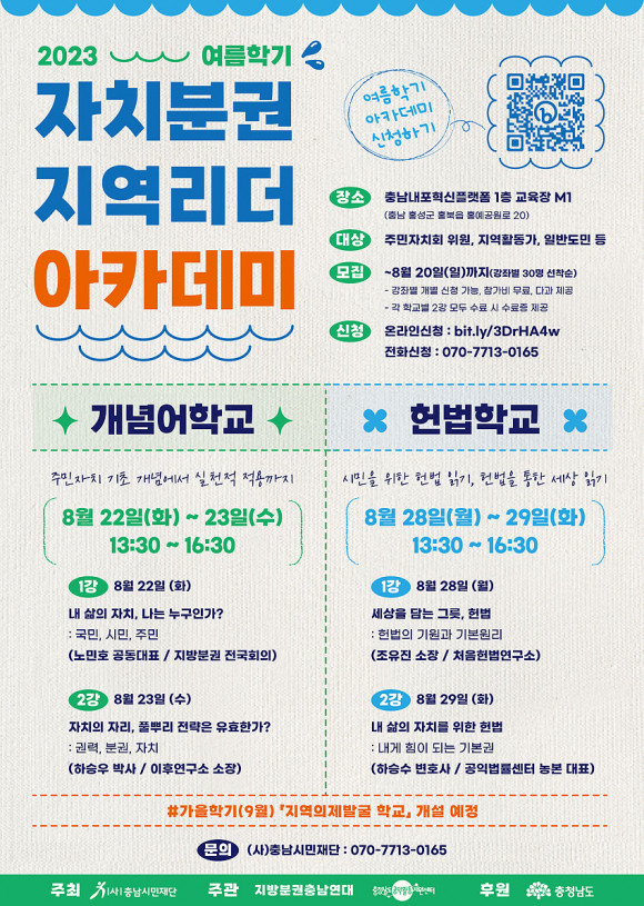 | | ¡è¡è ¡ã2023 ÀÚÄ¡ºÐ±Ç Áö¿ª¸®´õ ¾ÆÄ«µ¥¹Ì ¿©¸§ÇÐ±â Æ÷½ºÅÍ | ¨Ï ¿Â¾ç½Å¹® | | »ç´Ü¹ýÀÎ Ãæ³²½Ã¹ÎÀç´Ü(ÀÌÇÏ (»ç)Ãæ³²½Ã¹ÎÀç´Ü)Àº ¿À´Â 8¿ù 22Àϰú 23ÀÏ ¿ÀÈÄ 1½Ã 30ºÐºÎÅÍ ¿ÀÈÄ 4½Ã 30ºÐ±îÁö ¾çÀϰ£, Ãæ³²³»Æ÷Çõ½ÅÇ÷§Æû 1Ãþ ±³À°Àå M1¿¡¼ ÀÚÄ¡ºÐ±Ç Áö¿ª¸®´õ ¾ÆÄ«µ¥¹Ì¸¦ °³ÃÖÇÒ ¿¹Á¤ÀÌ´Ù.