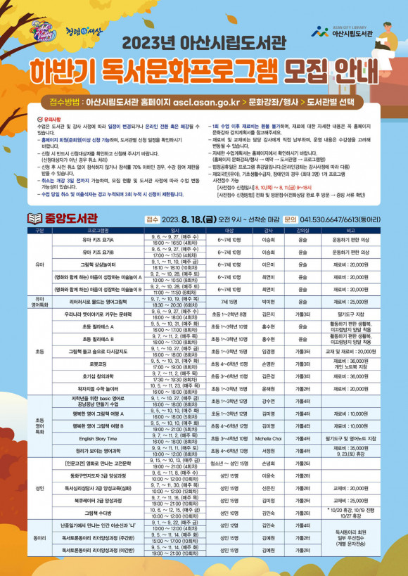 ÇϹݱâ ÇÁ·Î±×·¥Àº µµ¼°üº°·Î À¯¾Æ¡¤Ãʵ¼ºÀÎ µî ¿¬·É´ë¿¡ ¸Â´Â µ¶¼ ±â¹Ý ÇÁ·Î±×·¥°ú µµ¼°üº° ƯÈÇÁ·Î±×·¥(Áß¾Ó: ¿µ¾î, ÅÁÁ¤¿Â»ù: À¥Å÷, ²Þ»ù: ¿µ»ó)À¸·Î ±¸¼ºµÅ ¿î¿µµÈ´Ù.