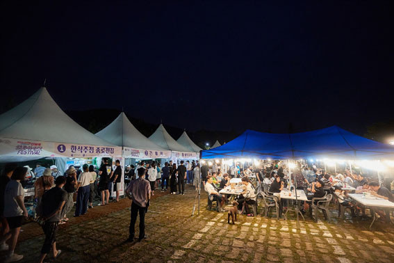 ÃàÁ¦Àå¿¡´Â À½¾Ç°ø¿¬À» °ü¶÷ÇÏ´Â °´¼®Àº ¹°·Ð, Àܵð¹ç¿¡¼ µ¾ÀÚ¸®¸¦ Æí °ü¶÷°´, ǪµåÆ®·° Á¸ÀÇ ½Äµµ¶ô°¡µé±îÁö °÷°÷¿¡¼ ÃàÁ¦¸¦ Áñ±â´Â ´Ù¾çÇÑ Ç¥Á¤µéÀÌ Æ÷ÂøµÇ°í ÀÖ´Ù.
